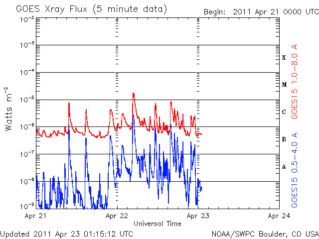 - 2011/ 4/22 09:42 1195黒点群の活動が強まり、やや大きめのCクラスフレアを起こしてます。
