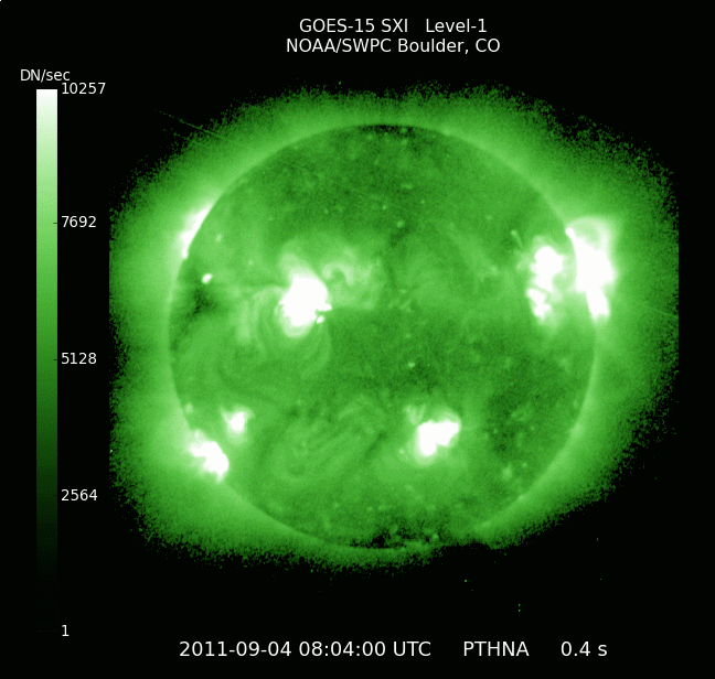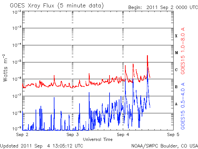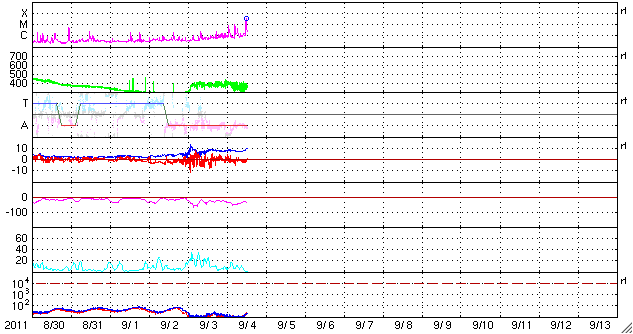 - 2011/ 9/ 4 13:35 C8.3の小規模フレアが発生しました。太陽風は平均的な速さです。