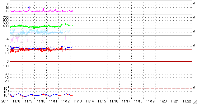 磁場強度も5nTから8nTほどに強まりました。