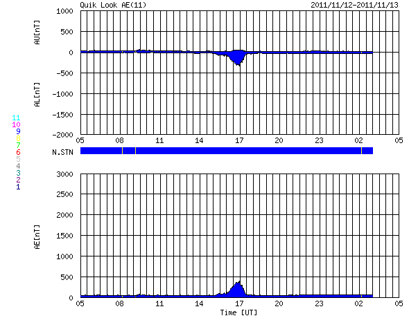 オーロラの活動度を示すAE指数のグラフはほとんど変化していません。