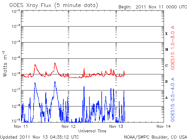 GOES衛星X線カメラでは、フレアの活動が見られ、