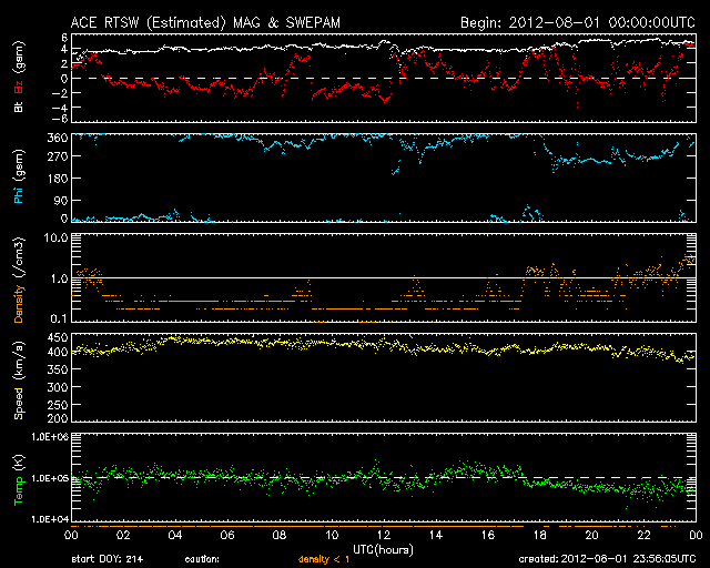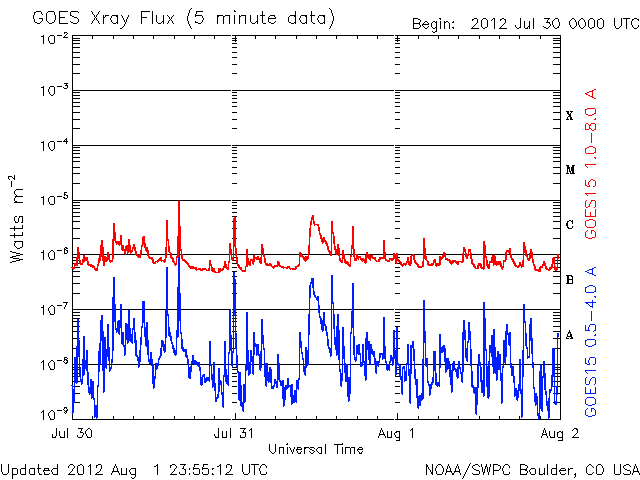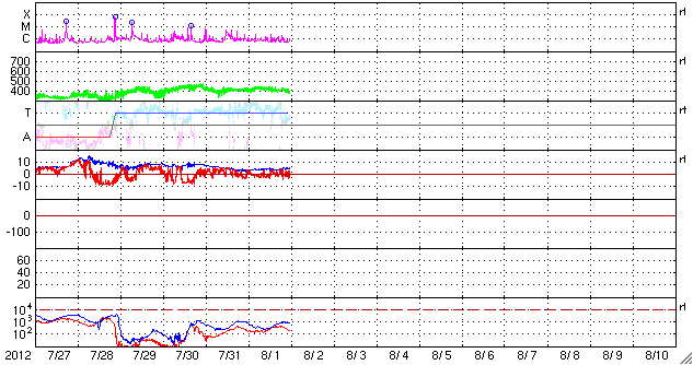 - 2012/ 8/ 1 12:17 太陽ではCクラスのフレアが続いています。太陽風は平均的な状態です。
