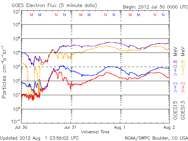 | 太陽放射線と放射線帯電子はともに静穏です。 |