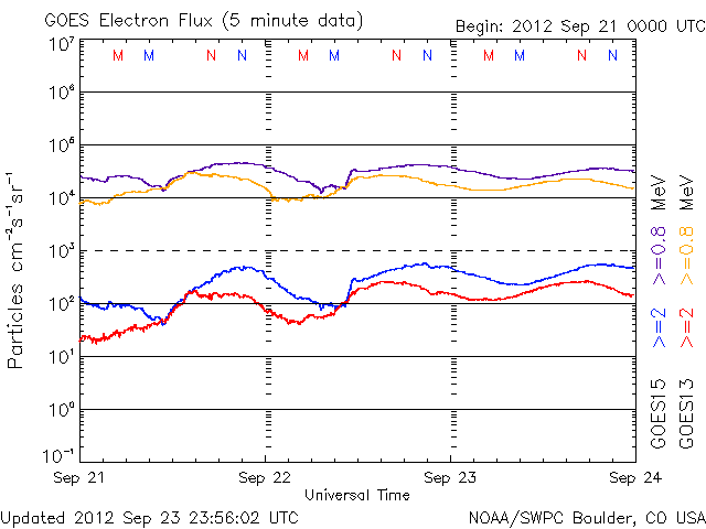 | 太陽放射線と放射線帯電子はともに静穏です。 |