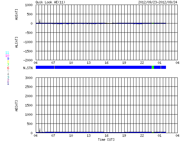 このため磁気圏は静穏で、AE指数は全く変化していません。