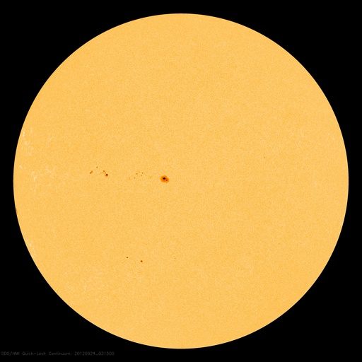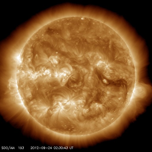 - 2012/ 9/19 12:05 太陽の東端から新しい黒点が現われました。太陽風は平均的な状態です。