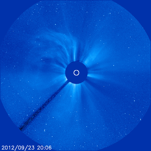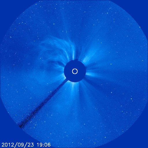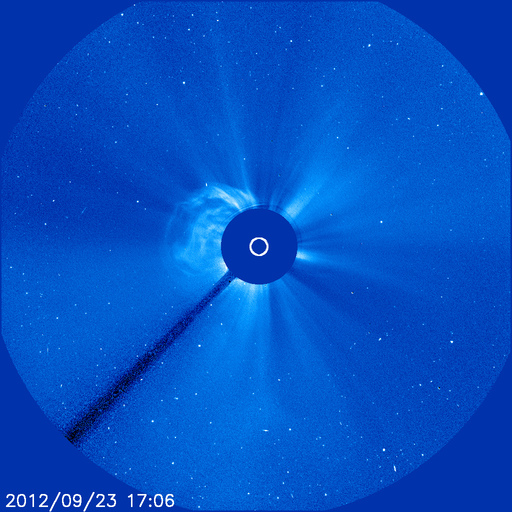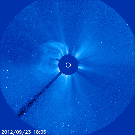 - 2012/ 9/22 14:41 太陽の裏側でCMEが発生しています。太陽風はやや高速ですが、磁気圏は概ね穏やかです。