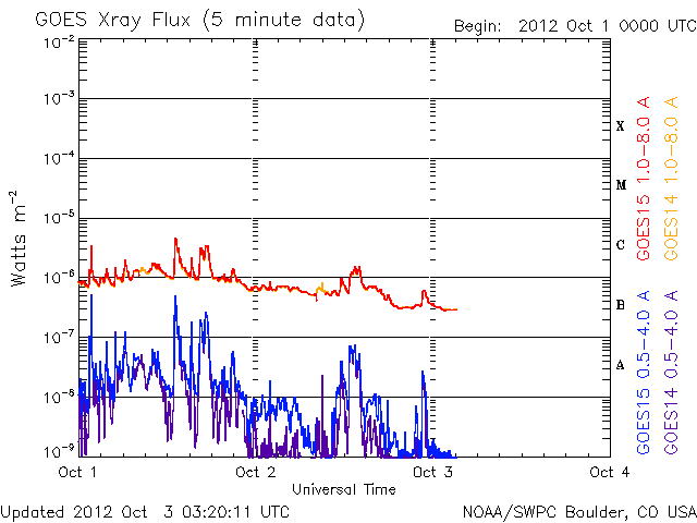 - 2012/ 9/28 12:18 C4、C3のフレアが発生しました。太陽風は穏やかです。