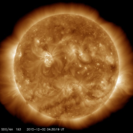 - 2012/11/29 12:14 1620黒点群でM2フレアが発生しました。太陽風は明日くらいに高速風が到来しそうです。