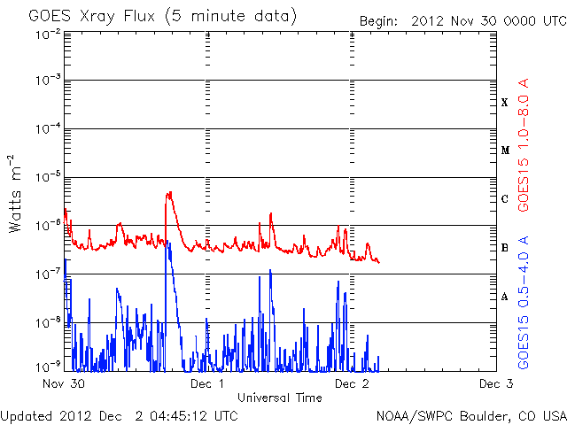 - 2012/11/28 11:49 Mクラスのフレアが2回発生しました。太陽風、磁気圏は穏やかです。