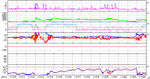 AE指数のグラフはほとんど変化していません。
