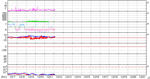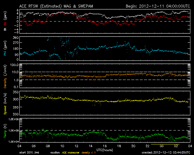 2012/12/10 12:30 太陽風磁場が南向きになって、オーロラの活動をやや高めています。