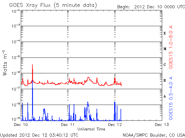 GOES衛星のX線によると、Bクラスの小さな変化が起きている程度です。
