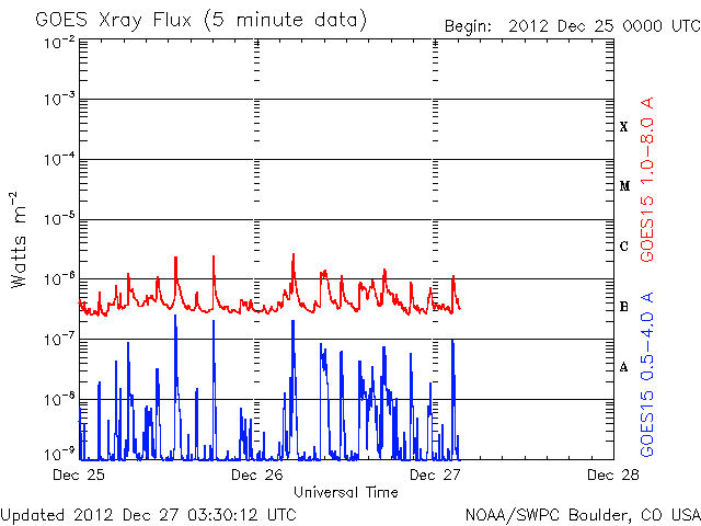 2012/12/26 12:57 太陽風の速度は300km/秒に下がっています。C4.1の小規模フレアが発生しています。
