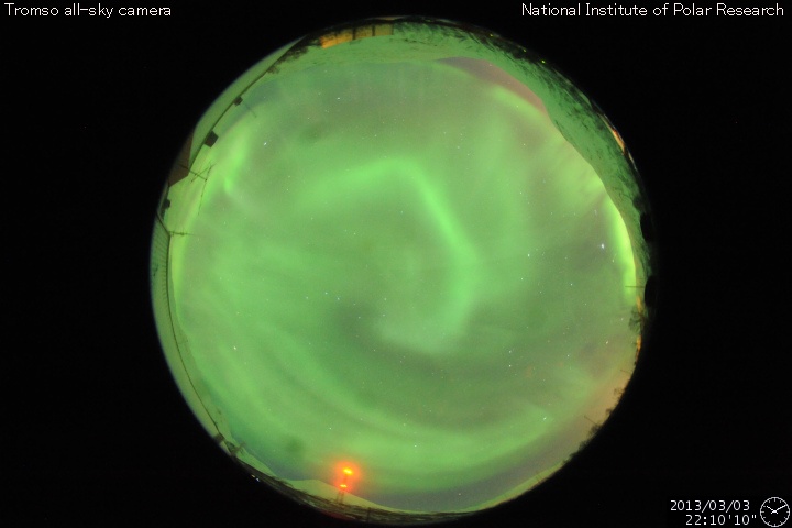 (c) NOAA/SWPC ![]() ノルウェー・トロムソの全天カメラで撮影されたオーロラ。 (c) 国立極地研究所 ![]() SDO衛星のAIA193カメラによる太陽コロナの様子 (c) SDO (NASA) ![]() SDO衛星による太陽の可視光写真。マウスの矢印を写真に重ねると、黒点番号付きの写真に切り替わります。 (c) SDO (NASA) ![]() ACEが観測した太陽風の磁場(1番上の枠、白線は全体の強度、赤線は南北成分) および、太陽風の密度(3番目の橙線)、速度(4番目の黄線) (c) NOAA/SWPC ![]() リアルタイムAE指数 下段のAEグラフの値が高くなると、オーロラ活動が活発化しています。 (c) 京都大学, NICT ![]() 27日の太陽周期に合わせたデータプロット 太陽が同じ面を地球に向けていた27日前の変化から、今後を予想することができます。 (c) 作図:宇宙天気ニュース