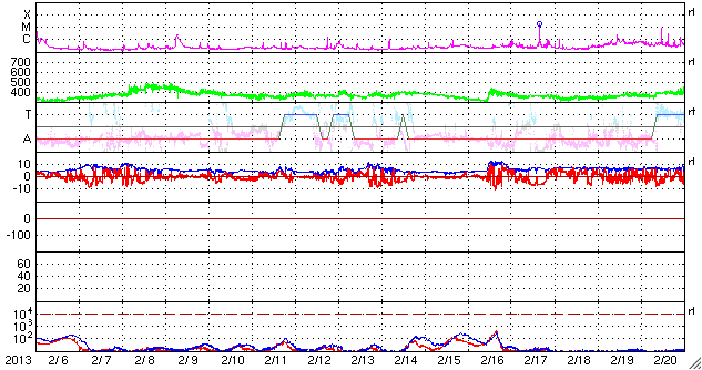 磁場強度も、5nTと平均的な状態が続いています。