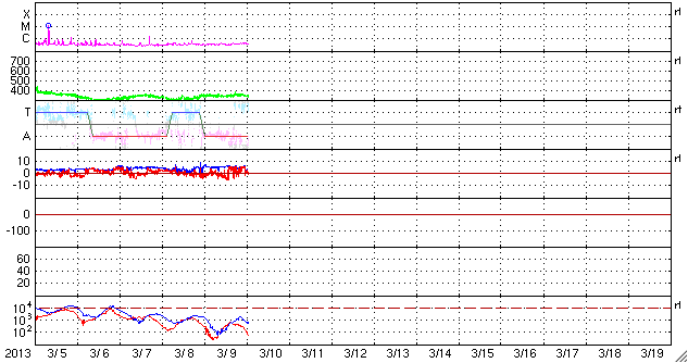 - 2013/ 3/ 6 14:14 M1.2の中規模フレアが発生しました。太陽風はかなり低速です。