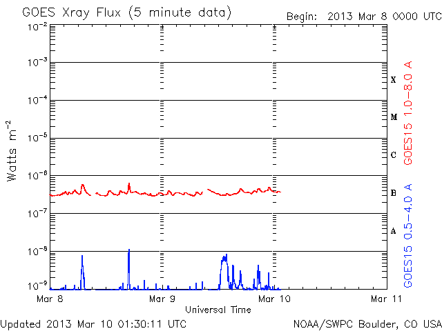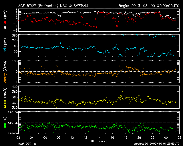 - 2013/ 3/ 9 13:20 低速の太陽風が続いています。太陽も穏やかです。
