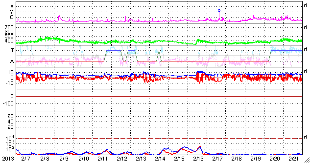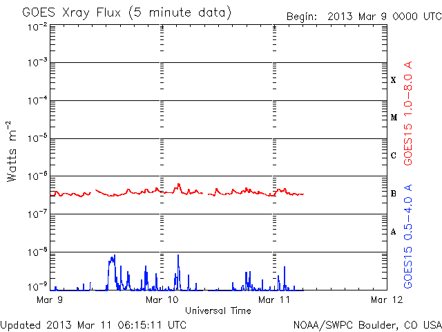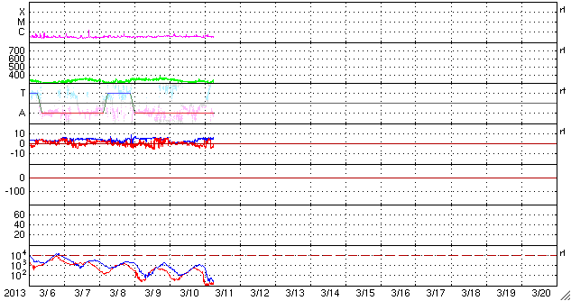 - 2013/ 3/ 6 14:14 M1.2の中規模フレアが発生しました。太陽風はかなり低速です。