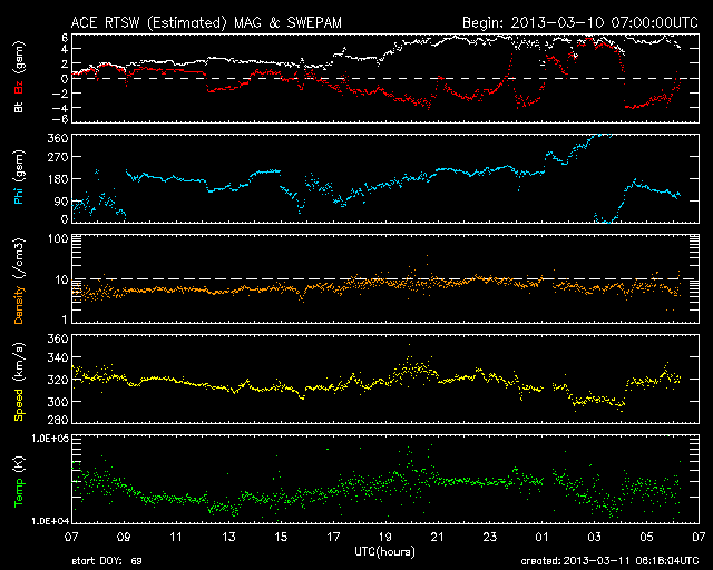 - 2013/ 3/ 7 09:20 太陽風は310km/秒と低速風が続いています。太陽も穏やかです。フィンランドのオーロラ写真をどうぞ。