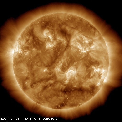 - 2013/ 3/ 9 13:20 低速の太陽風が続いています。太陽も穏やかです。