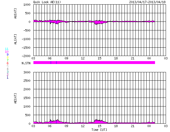 AE指数は小さな変化が所々見られる程度です。