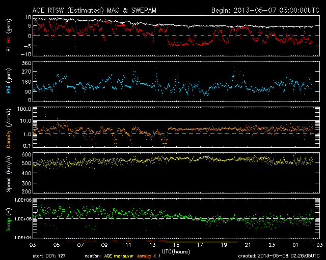 - 2013/ 5/ 3 12:17 M1の中規模フレアが発生しました。太陽風はやや高速です。