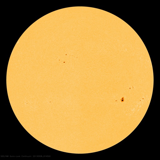 SDO衛星による太陽の可視光写真。マウスの矢印を写真に重ねると、黒点番号付きの写真に切り替わります。
