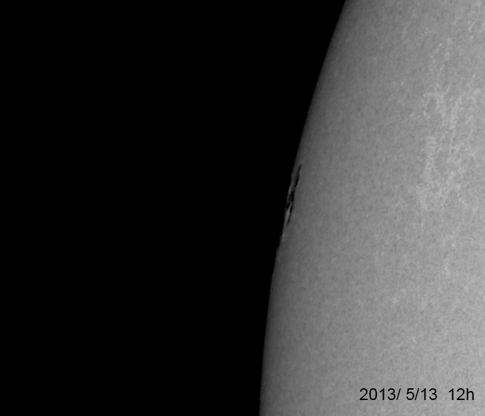 2013/ 5/15 11:46 今朝、1748黒点群でX1.2の大規模フレアが発生しました。Xフレアは4回めです。