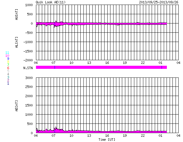 磁気圏も静穏で、AE指数はほとんど変化していません。