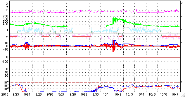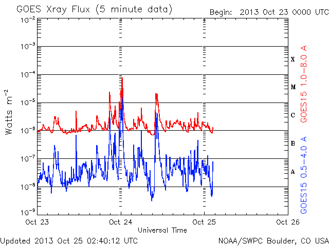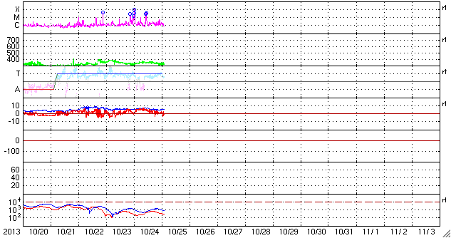 - 2013/10/23 16:39 Mクラスのフレアが2回発生しました。太陽風はやや低速です。