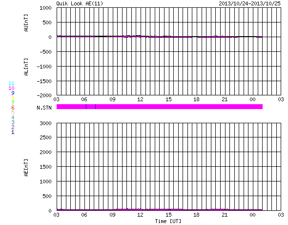 下段のAEグラフの値が高くなると、オーロラ活動が活発化しています。