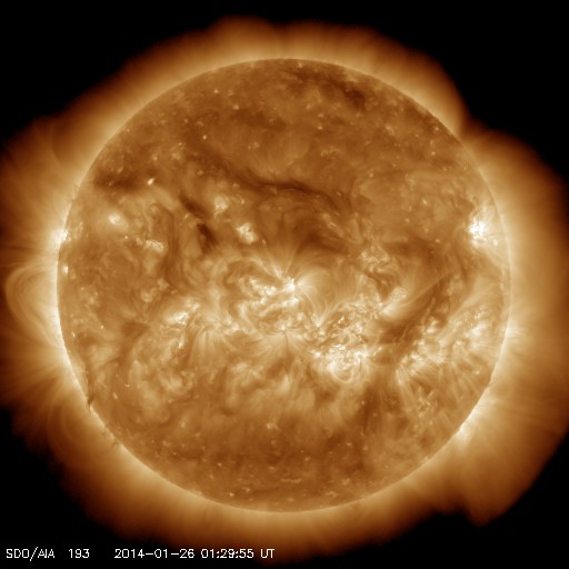 2014/ 1/24 12:41 太陽風はやや低速の風になっています。太陽も穏やかです。