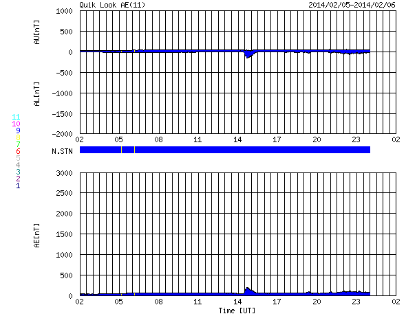 下段のAEグラフの値が高くなると、オーロラ活動が活発化しています。