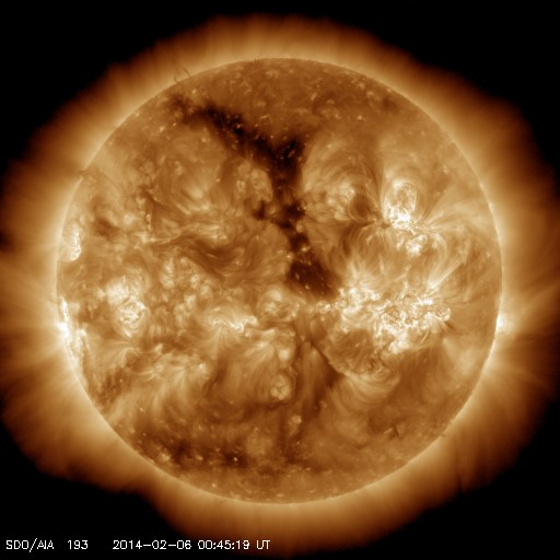 - 2014/ 2/ 2 13:28 1967黒点群は大きな姿を保っています。太陽風の乱れはまだ到来していません。