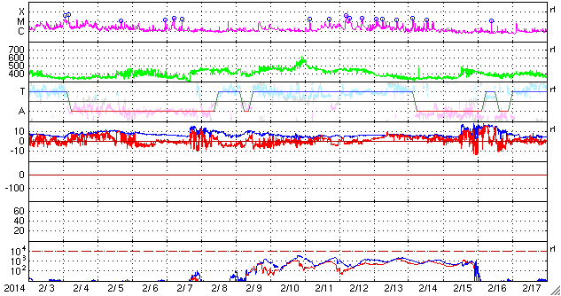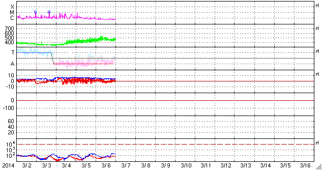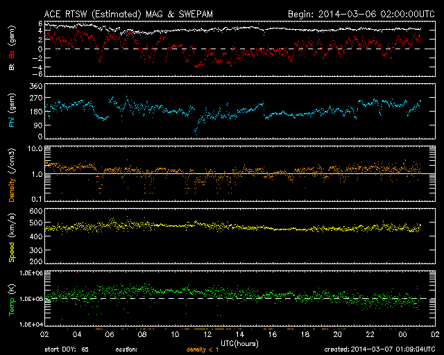 (c) NOAA/SWPC ![]() 2014/ 3/ 7 10:09 追加 ACEが観測した太陽風の磁場(1番上の枠、白線は全体の強度、赤線は南北成分) および、太陽風の密度(3番目の橙線)、速度(4番目の黄線) (c) NOAA/SWPC ![]() | ||||||||||||||||||||||||||||||||||||||||||||||||||||||||||||||||||||||||||||||||||||||||||||||||||||||||||||||||||||||||||||||||||||||||||||||||||||||||||||||||||||||||||||||||||||||||||||||||||||||||||||||||||||||||||||||||||||||||||||||||||||||||||||||||||