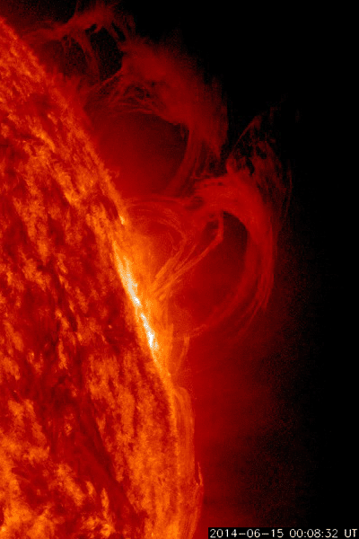 見えない磁気に沿ってループを作りながら、プラズマが躍動しています。