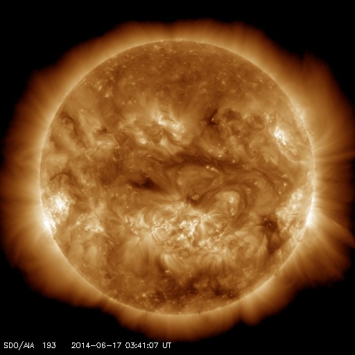 SDO衛星AIA193の写真には、コロナホールは特に見られず、
