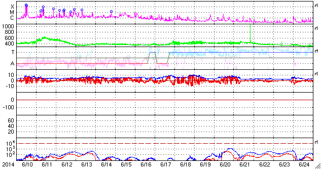 磁場強度は4〜5nTと平均的な状態です。