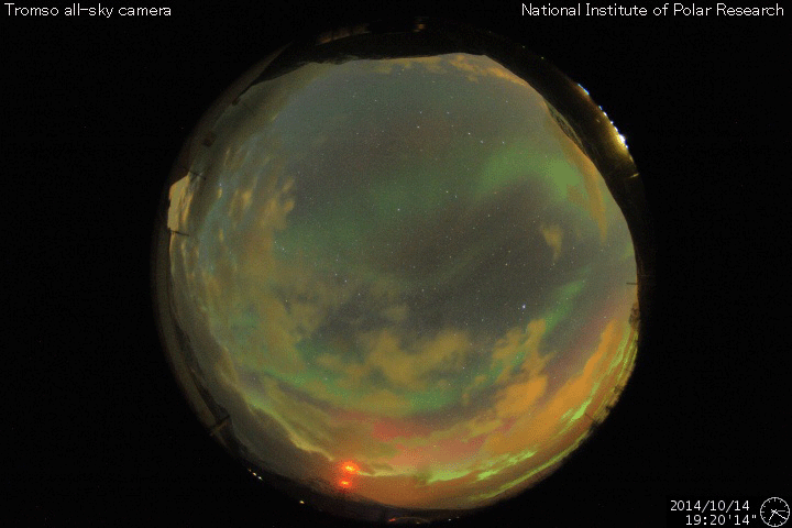 (c) SDO (NASA)、 (動画加工 : 宇宙天気ニュース) ![]() 太陽の東端から噴出するCMEの様子。SOHO衛星LASCO C3。 (c) SOHO (ESA & NASA)、 (動画加工 : 宇宙天気ニュース) ![]() ノルウェー・トロムソの全天カメラによる、世界時14日19時頃のオーロラの様子。 (c) 国立極地研究所、(動画加工 : 宇宙天気ニュース) ![]() SDO衛星のAIA193カメラによる太陽コロナの様子 (c) SDO (NASA) ![]() SDO衛星による太陽の可視光写真。マウスの矢印を写真に重ねると、黒点番号付きの写真に切り替わります。 (c) SDO (NASA) ![]() GOES衛星の太陽X線データ (c) NOAA/SWPC ![]() ACEが観測した太陽風の磁場(1番上の枠、白線は全体の強度、赤線は南北成分) および、太陽風の密度(3番目の橙線)、速度(4番目の黄線) (c) NOAA/SWPC ![]() リアルタイムAE指数 下段のAEグラフの値が高くなると、オーロラ活動が活発化しています。 (c) 京都大学, NICT ![]() 27日の太陽周期に合わせたデータプロット 太陽が同じ面を地球に向けていた27日前の変化から、今後を予想することができます。 (c) 作図:宇宙天気ニュース