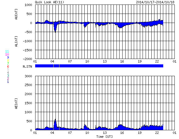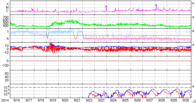 (c) SDO (NASA) ![]() SDO衛星のAIA193カメラによる太陽コロナの様子 (c) SDO (NASA) ![]() SDO衛星による太陽の可視光写真。マウスの矢印を写真に重ねると、黒点番号付きの写真に切り替わります。 (c) SDO (NASA) ![]() GOES衛星の太陽X線データ (c) NOAA/SWPC ![]() ACEが観測した太陽風の磁場(1番上の枠、白線は全体の強度、赤線は南北成分) および、太陽風の密度(3番目の橙線)、速度(4番目の黄線) (c) NOAA/SWPC ![]() リアルタイムAE指数 下段のAEグラフの値が高くなると、オーロラ活動が活発化しています。 (c) 京都大学, NICT ![]() 27日の太陽周期に合わせたデータプロット 太陽が同じ面を地球に向けていた27日前の変化から、今後を予想することができます。 (c) 作図:宇宙天気ニュース