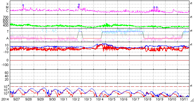 このため、磁気圏の活動度もやや高い状態が続いていて、