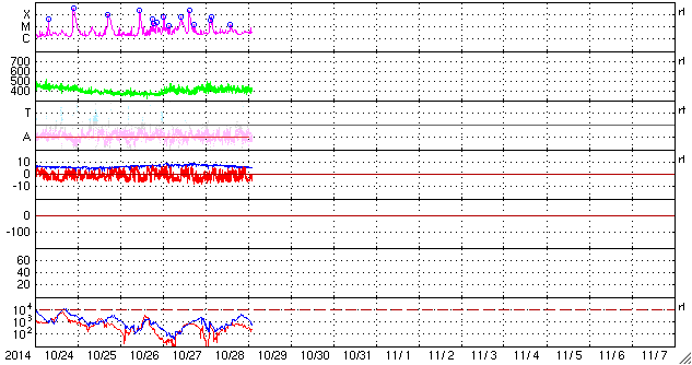 磁場の南北成分の振れは続いていて、