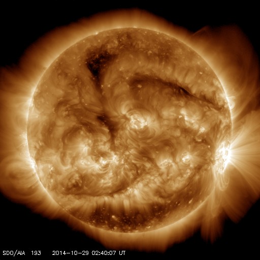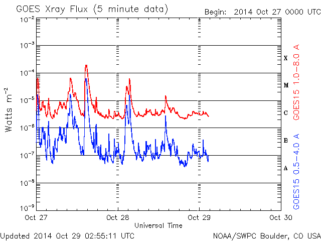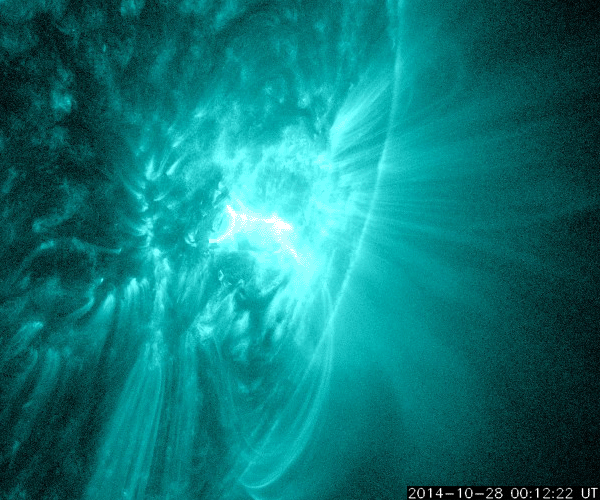 - 2014/10/28 12:16 2192黒点群で、再びX2.0の大規模フレアが発生しました。活発な活動が続いています。
