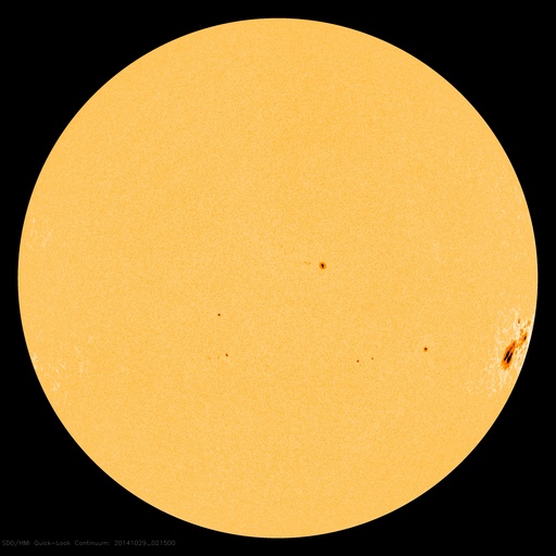 太陽の西の端に近づいた2192黒点群。SDO衛星。