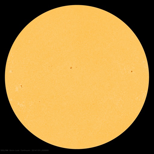 SDO衛星による太陽の可視光写真。マウスの矢印を写真に重ねると、黒点番号付きの写真に切り替わります。