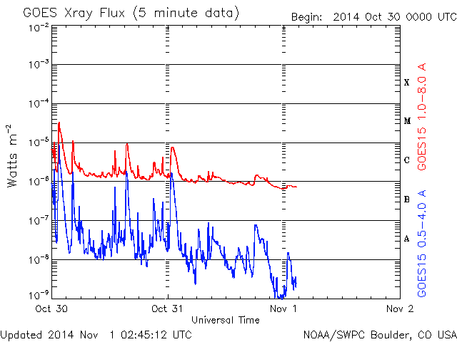 太陽X線のグラフの強度は次第に下がっています。
