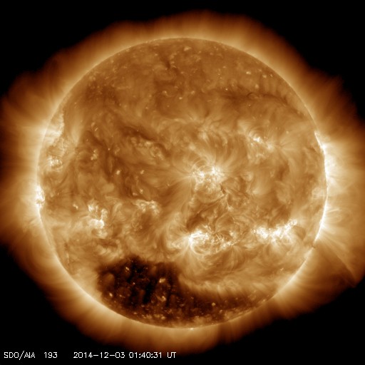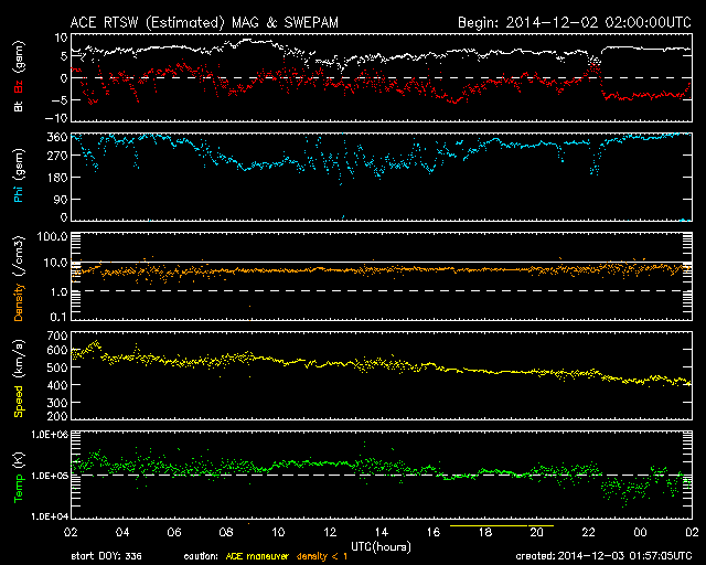 - 2014/12/ 2 12:04 太陽風は600km/秒の高速風に変わっています。