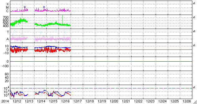- 2014/12/13 13:43 コロナホールの影響で600km/秒の高速太陽風が到来しています。