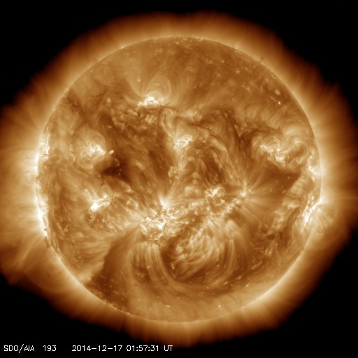 - 2014/12/16 12:20 2242黒点群は広がっていますが、フレアは減っています。太陽風はやや高速です。